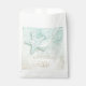Uma textura aquosa nos tons macios do mar e da areia é o fundo de elementos marinhos como tartaruga, estrela e conchas que são aperfeiçoados com ondas de espuma marinha para criar as partes desta suíte de casamento. A bolsa de favoritos de casamento fornecida aqui contém a estrela acima e uma modelo para adicionar sua mensagem de obrigado, nomes e data de casamento. Procure ID837 para ver todas as peças felizes neste conjunto.