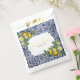 A mão pintou azulejos tradicionais de Portugal design com limões mediterrânicos. Trabalho de arte azul azulejo e azulejo floral branco. Um belo design mediterrânico que representa os limões amarelos com o seu verde e floresce contra um padrão português azul e branco. O texto do casamento é elegantemente enquadrado com uma forma geométrica branca. Azulejo único, azul e branco, design de casamento floral com elementos modernos. Os convites de casamento e outros artigos de papelaria também estão disponíveis.