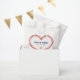 Branca vermelha e azul de baseball / bonecas de softball com pontos cardíacos. Personalize-o com os detalhes do evento. Excelente para fãs esportivos.