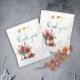 Design de aquarela de inverno confortável, com um moderno guião manuscrito, buquê de morango e galhos de árvores verdes sobre fundo de neve. Este belo convite define uma cena perfeitamente hiper. O texto pode ser facilmente personalizado para um único design para o seu dia especial.