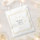 Obrigado aos seus participantes de casamento com este saco de favores brancos de tamanho amplo que apresenta uma simples cor de champanhe, coroa cardíaca e design de borda e um roteiro estilizado junto com os nomes da noiva e do noivo impressos em letras negras. Personalize seu saco de favoritos editando e substituindo nomes.