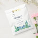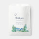O obrigado de casamento de destino da Montanha Rocky que você prefere bolsas é perfeito para um casamento ao ar livre. O design apresenta uma paisagem de natureza selvagem pintada, azul e verde, com pinheiros de aquarela, pássaros e montanhas. Personalize as bolsas de tratamento com um obrigado curto que você envia, seus nomes e a data. Essas bolsas de tratamento podem ser usadas para uma recepção de casamento, chá de panela ou qualquer evento ou festa.