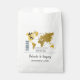 Este design apresenta um tema de passagem de embarque. Ele mostra um mapa dourado do mundo junto com dois aviões fazer forma cardíaca à medida que viagem pelo mundo. Este destino tematizado design de casamento é definido como um cartão de embarque com a data do casamento personalizado nos quadrados. Um design de destino romântico com um toque elegante. Ideal para um casamento de destino, não importa onde no mundo. O perfeito viagem de casamento de época inteira... design de saco. Os convites de casamento e outros artigos de papelaria também estão disponíveis.