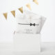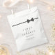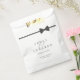 Faça um tom refinado para as suas celebrações de casamento com esta bolsa de favores de gravata negra contemporânea. Apresentando gráficos elegantes que ecoam os detalhes refinados de um smoking clássico, essa coleção de casamento inclui elementos como padrões pleados, brancos nítidos e sotaques negros brilhantes para uma vibração personalizada e moderna. Perfeito para casais de dois noivos que amam o ousado minimalismo, este design oferece uma estética sem esforço elegante que é eterno e sofisticada. Procure ID1090 para ver outras peças neste conjunto de casamento coordenado.