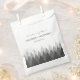 Estas bolsas são perfeitas para qualquer casal planejando uma celebração de casamento rústica na floresta. O design apresenta uma faixa de floresta ombre em tons de cinza em um fundo branco com uma redação editável coordenada por cor. O design simples pode ser personalizado para se adequar ao seu evento especial e será o saco de presente/favor perfeito para qualquer festa temida rústica, incluindo chás de panela, noivados, chás de casamento, festas de aniversário e muito, muito mais.