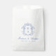 Elevem os seus favores de casamento com as nossas bolsas. Apresentando uma bela crista azul ao estilo barroco em torno do monograma do casal, essas bolsas exibem nomes em clássico caligrafia azul com a data do casamento abaixo. Estas bolsas são perfeitas para adicionar um toque personalizado e elegante aos seus favores de casamento, fazer sua celebração ainda mais memorável.