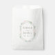 Obrigado seus convidados de casamento com doces nestas bolsas personalizadas, desenhadas para combinar com nossa coleção de casamentos de Pastéis à beira-mar. Design apresenta uma forma geométrica hexágona alongada, flanqueada por ilustrações da vida marinha — conchas, estrelas, algas e cascas de náutilo — em pastéis de praia de areia. Adicione seus nomes e data de casamento em sandy tan lettering.