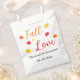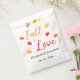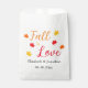 Apaixonar-se por presentes personalizados de eventos com paleta de cores vermelha, laranja e amarela de outono com folhas de maple. O texto pode ser personalizado para um casamento, chá de panela, chá de fraldas ou qualquer outro evento