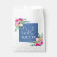 Casamentos personalizados favorecem bolsas com iniciais de casal com realces florais cor-de-rosa bonito e centro azul com letra branca. Elegante tema do casamento floral.