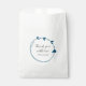 Obrigado aos seus participantes de casamento com este saco de favores brancos de tamanho amplo que apresenta um simples design de cor azul-lacrimejante e um roteiro estilizado junto com os nomes da noiva e do noivo impressos em letras negras. Personalize seu saco de favoritos editando e substituindo nomes.