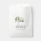 Esta bolsa de favores do casamento mostra as palavras "Amor é Doce" na tipografia da moda. Um galho de oliveiras molda o topo. Use os campos modelo para adicionar seus nomes e data de casamento ou texto personalizado. Para ver mais artigos de cartaz de casamento apressados visite www.zazzle.com/dotellabelle Arte aquática e design por Victoria Grigaliunas