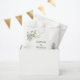 Este belo saco de favores é enfeitado com um elegante motif floral com rosas delicados e hortênsias aninhadas entre as folhas verdes e peludas. Na frente, o texto exibe os nomes dos cônjuges e a data do casamento em uma fonte de serifa clássica, que aumenta ainda mais a sofisticação geral. Personalize-os para tornar o seu dia de casamento verdadeiramente excepcional.
