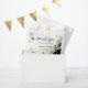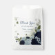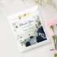 Lindas e empoeiradas flores azuis e marinhos azuis com folhas verdes, bolsa de favores botânicos.