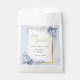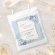 Aprecie seus hóspedes com um favor maravilhosamente empacotado usando esta elegante bolsa de favor de casamento. Apresentando flores de aquarelas moles em azul em pó com sotaques de ouro refinados, este saco é perfeito para o enchimento com doces, doces ou presentes de obrigado pequeno. Totalmente personalizável — adicione seus nomes, data de casamento ou uma pequena mensagem de apreço. Corresponde perfeitamente à Coleção de Casamentos Azul e Dourado em Pó de cheio para um estilo de celebração coeso e romântico. Ideal para casamentos, chás de panela, jantadas de ensaio ou brunches de despedida.