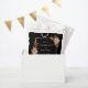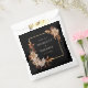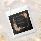 Este Black Floral Favor Bag com o nome da noiva e do noivo, data de casamento, e o 'obrigado você' apresenta cor d'água queimada manualmente laranja e folhas de terracota, creme e dahlias bege, e belos rosas coloridos à volta de um falso quadrado de folha de ouro sobre fundo preto. Localize itens correspondentes na Coleção Romance de outono Preto.