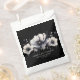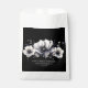 Design de casamento simples e giro, preto e branco. Um olhar clássico, mas caprichoso, com flores negras, cinzas e creme coloridas, com fontes brancas e letras modernas. Edite todo o texto para suas próprias informações. Excelente para um casamento de vassoura com uma reviravolta moderna, um caso de inverno ou primavera clássico, ou até um pouco de vibe gótica. Elegante Moderno Boho Floral Black Weding Favor Bag