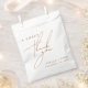 Saco de lembrança de casamento em terra cota rústica com caligrafia moderna e minimal.