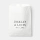 Casamento moderno favorece bolsas com design preto e branco minimalista com seus nomes em uma fonte grande junto com sua data de casamento. Esta design é simples o suficiente para um casamento formal, mas faz uma declaração ousada.