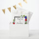 Design apresenta flores rosadas patrióticas, brancas e azuis do anêmona panda com eucalipto verde sobre uma cinza colorida de carvão.