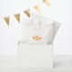 Nossas bolsas de favores doçamente românticas inspiradas na natureza são um belo toque personalizado para casamentos de primavera e verão. O design apresenta uma única abelha de mel em aquarelas amarelas douradas, com os nomes do casal e a data do casamento em elegantes caracteres cinza. Coordena-se com nossos convites e acessórios da Abelha Dourada.