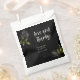 Saco de favoritos de casamento gótico e rústico com ilustração de rosa preto. O texto diz "amor e obrigados".