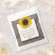 Estas bolsas são perfeitas para qualquer casal planejando um casamento no país rústico. A design apresenta um girassol brilhante e bonito em um fundo de efeito de burlap rustic. O design rústico pode ser personalizado para se adequar ao seu evento especial e será o saco de propinas/presentes perfeito para qualquer festa temática nacional, incluindo chás de panela, noivados, chás de casamento, festas de aniversário e muito mais.