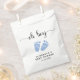 Festa bonita para o seu chá de bebê com "oh boy" em um roteiro de na moda com baloiços e uma aquarela azul de pés de bebê. Por baixo, você pode personalizar facilmente com seu nome e data de chá.