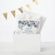 Sacolas de favores de chá de noiva com flores em aquarela azul e branca.