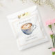 Linda bolsa de favor de chá de noivado com tema de café. A xícara de café tem um coração de espuma dentro! A caligrafia de texto incrível adiciona ao visual. Um design tão maravilhoso para o seu chá de noivado de café. Veja itens coordenados em nossa loja, Enchanted Finch.