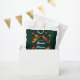 Design rústico, mas moderno, apresentando folhas de outono em tons de vermelho, laranja e amarelo em um fundo verde escuro sazonal