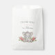 Tratar as bolsas de todos os seus convidados de chá de fraldas Drive-by. Decorado com uma princesa adorável elefante bebê sentada numa cama de flores cor-de-rosa, esta bolsa de "Obrigado" é a forma perfeita de mostrar aos seus convidados quão feliz você está por ter vindo.