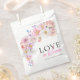 Estas bolsas de lembrancinhas de chá de noiva apresentam um design floral de primavera rosa quente. O texto é totalmente editável. Para personalização mais avançada deste design, basta selecionar o botão "Personalizar" acima.