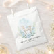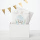 Esta adorável design apresenta uma doce ovelha bebê, balões azuis e eucalipto elegante + coroa floral.