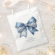 Apresentando bolsas de favor adoráveis para um chá de fraldas delicioso que incorpora a essência do charme do país! Essa design encantadora apresenta um arco impressão jean azul, branco, adormecido com pérolas refinadas e detalhes de rendas que acrescentam um toque de elegância. O belo contraste contra o fundo branco suave cria um apelo visual impressionante. Torne esta peça extraordinária verdadeiramente sua personalizando-a com seus detalhes exclusivos.