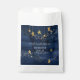 "Grelha Pequena Estrela Dourada Marinho Blue Boy Favor Bag." Acabe com a decoração do Chá do seu Bebê Boy com estes doces sacos de presentes que você pode encher com uma sobremesa ou um pequeno presente que eles vão tesourar. Lava-maria rústica, azul-escura, azul-escura, pintada, contrasta lindamente com o fundo de madeira com as estrelas douradas reluzentes e o texto branco dourado brilhado. Arte de uma artista e designer internacionalmente licenciada, Audrey Jeanne Roberts, copyright.