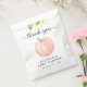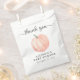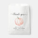 Um obrigado de chá de fraldas bonito e neutro para o gênero, você prefere uma bolsa com uma cor d'água cor de laranja pastel de uma abóbora e "obrigado você" em um roteiro de cinza com balsas.