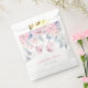 Papel de chá de fraldas de borboleta giro favorece bolsas com lavanda roxa e flores cor-de-rosa pastel com letra de caligrafia.