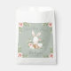 Coelho de coelhinho de bebê, de cor aquosa, num cesto mais vestido, rodeado por lindas flores coloridas pastel neste saco de favores "Obrigado". Tão fofo para aquele chá de menina. Produtos correspondentes disponíveis. 100% de satisfação do cliente com o "Zazzle"