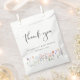 Esta elegante bolsa de favores de chá de fraldas apresenta aquarelas de flores silvestres delicadas e "Obrigado" em um roteiro quic contemporâneo. Personalize com o nome da data de mamãe e chá.
