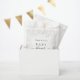 Para um chá de fraldas, comemorando um menino. Um fundo branco chic. Decorado com gotas de brilho falso e um bebê elefante giro. Personalize e adicione o nome da mãe a ser.