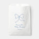Mande seus convidados para casa com boas memórias usando essas Bolsas personalizadas de Chá de fraldas de fita Arco Coquette Azul Friso. Adoradas com um design azul charmoso, essas bolsas favoritas são perfeitas para segurar doces ou pequenos presentes. Personalize-os com o nome da nova mãe para um toque especial extra. Entre na Ferramenta Design Zazzle para personalização adicional.