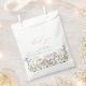 Saco de favorecimento de chá de fraldas de flor selvagem que apresenta gráficos florais bonito em tons de azul suave, pincelado, amarelo, branco e verde e uma fonte moderna. O design é perfeito para um bebê em chá de fraldas de temas floridos para uma menina. Par com qualquer coisa na coleção ELODIE para um olhar coeso.