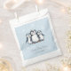 Chá de fraldas bonito ilustra pinguins e flocos de neve. Personalizado com seu próprio texto. Use o recurso Editar Design para alterar o tamanho, o estilo ou a cor da fonte. Veja toda a coleção de convites, bolsas de favoritos, adesivos, cartões de agradecimento, banner e muito mais...