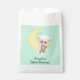 Um carneiro bonito com ursinho de peluche empoleirado em uma lua crescente faz uma deliciosa bolsa de favores de chá de fraldas. Feito backup em um pequeno fundo aqua com outros produtos correspondentes disponíveis neste design. Edite o texto de exemplo com o nome do honroso do seu chá de fraldas ou outro texto. A adorável cortesia gráfica de Kristi W. Designs.
