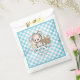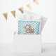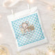 Use este obrigado correspondente que você privilegia o bolsas para as vantagens dos seus convidados. Ursinho-peludo castanho-bonito em azul-bebê e padrão de verificação branco com cesto de piquenique, coelho e pacificador. Modelos fornecidos.