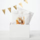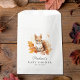 Chás de fraldas bonitos, com o tema da floresta, favorecem bolsas com a ilustração aquosa de um esquilo bebê cercado por folhas de outono em tons de laranja, vermelho e amarelo. Personalize o chá de fraldas de esquilo do bebê a favor das bolsas com o nome da futura mãe e a data do chá de fraldas. Projetado para coordenar com a nossa coleção de Chás de fraldas de Animais da Floresta em Cuta.