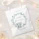 Um chá de fraldas bonitinho e neutro favorece bolsas com "Um doce pequeno obrigado" numa mistura de tipografia moderna e um roteiro de na moda com um inchaço cardíaco, e uma aquarela de um elefante bebê verde-menta pastel numa coroa de verde-sábio eucalipto verde-sensual. Personalize com o nome da futura mãe e a data do chá.
