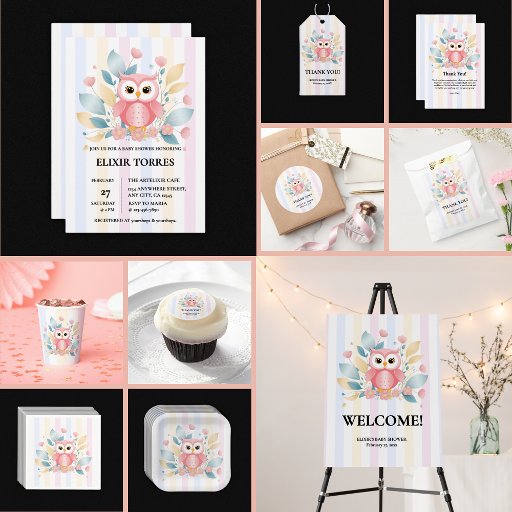 Cute Pink Owl Pastel Floral Baby ShowerCriado por Elixir Torres
