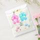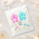 Obrigado de chá de fraldas de gêmeos criativos você favorece bolsas com filhotes gêmeos e bebês e buquês de balão azul e rosa. Editar texto para adicionar o nome da futura mãe.