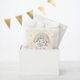 Entra num mundo de magia e maravilha enquanto celebramos a chegada de seu pequeno com nossas bonitinhas Bolsas Chás de fraldas Favoritas do Pastel Rainbow Unicorn. Esta design de aquarela apresenta um delicioso unicórnio bebê aninhado entre um arco-íris pastel, nuvens e estrelas. Perfeito para um Chá de fraldas Moça, eles são personalizáveis, assegurando que cada detalhe reflita a magia desta ocasião especial.